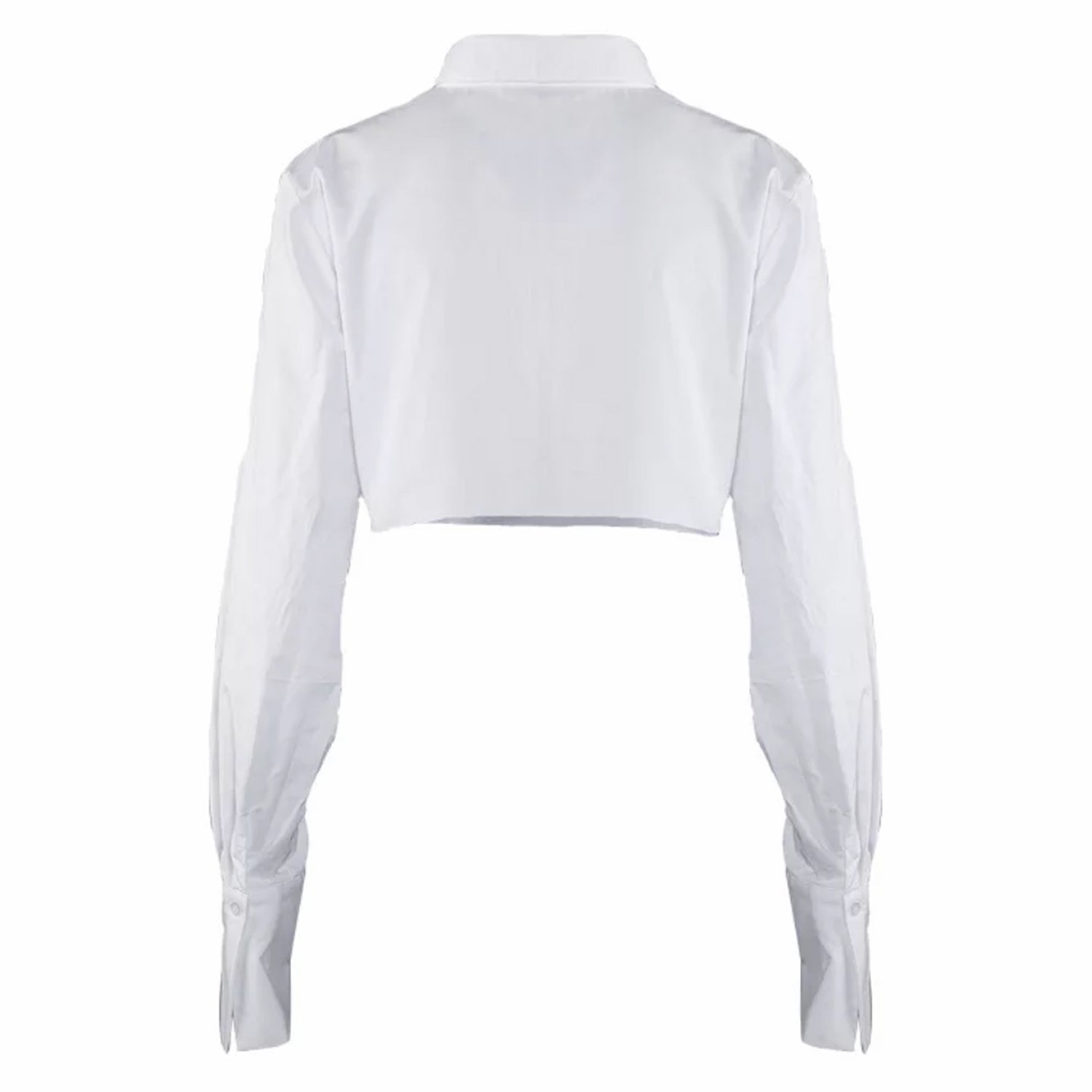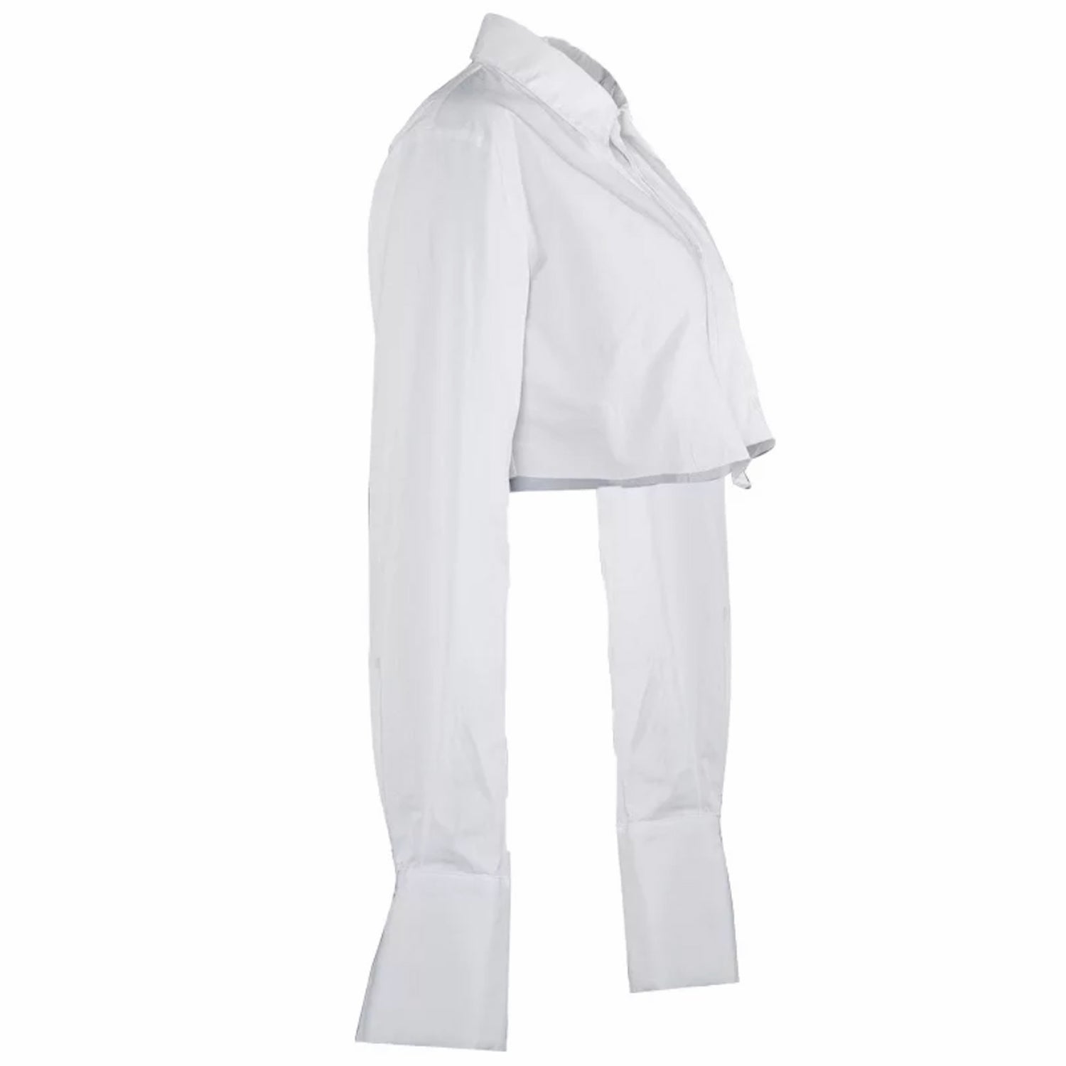This Is A White Crop Long Sleeve Shirt Cotton Solid Asymmetrical Hem Casual Top Blouse Button Down