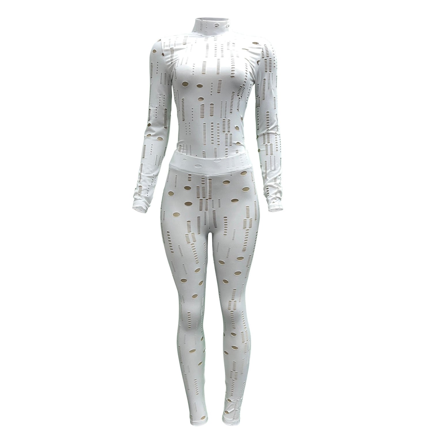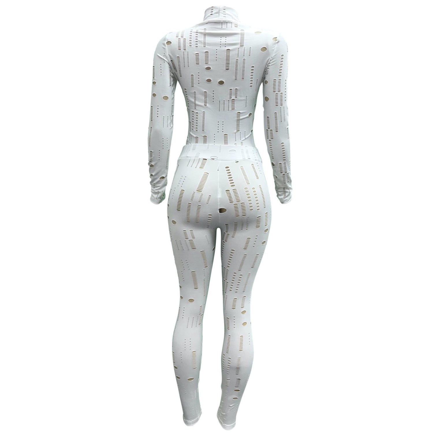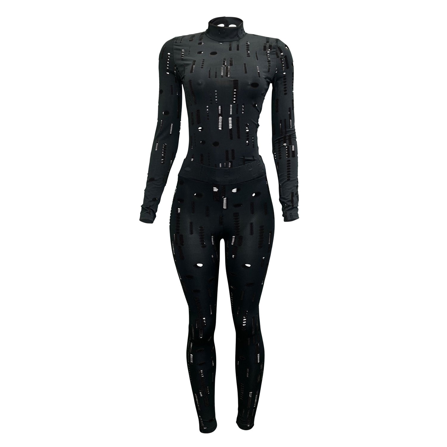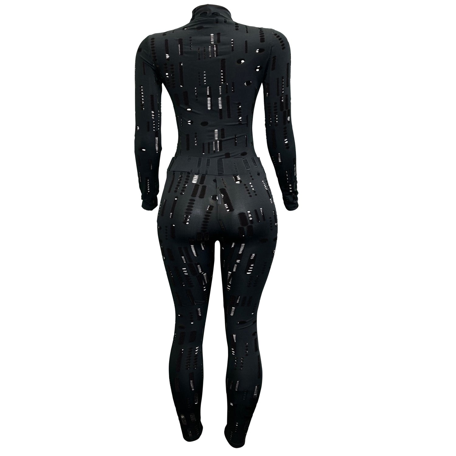 This is a chic & sexy piece with a high neck and long sleeves. Get ready to turn heads